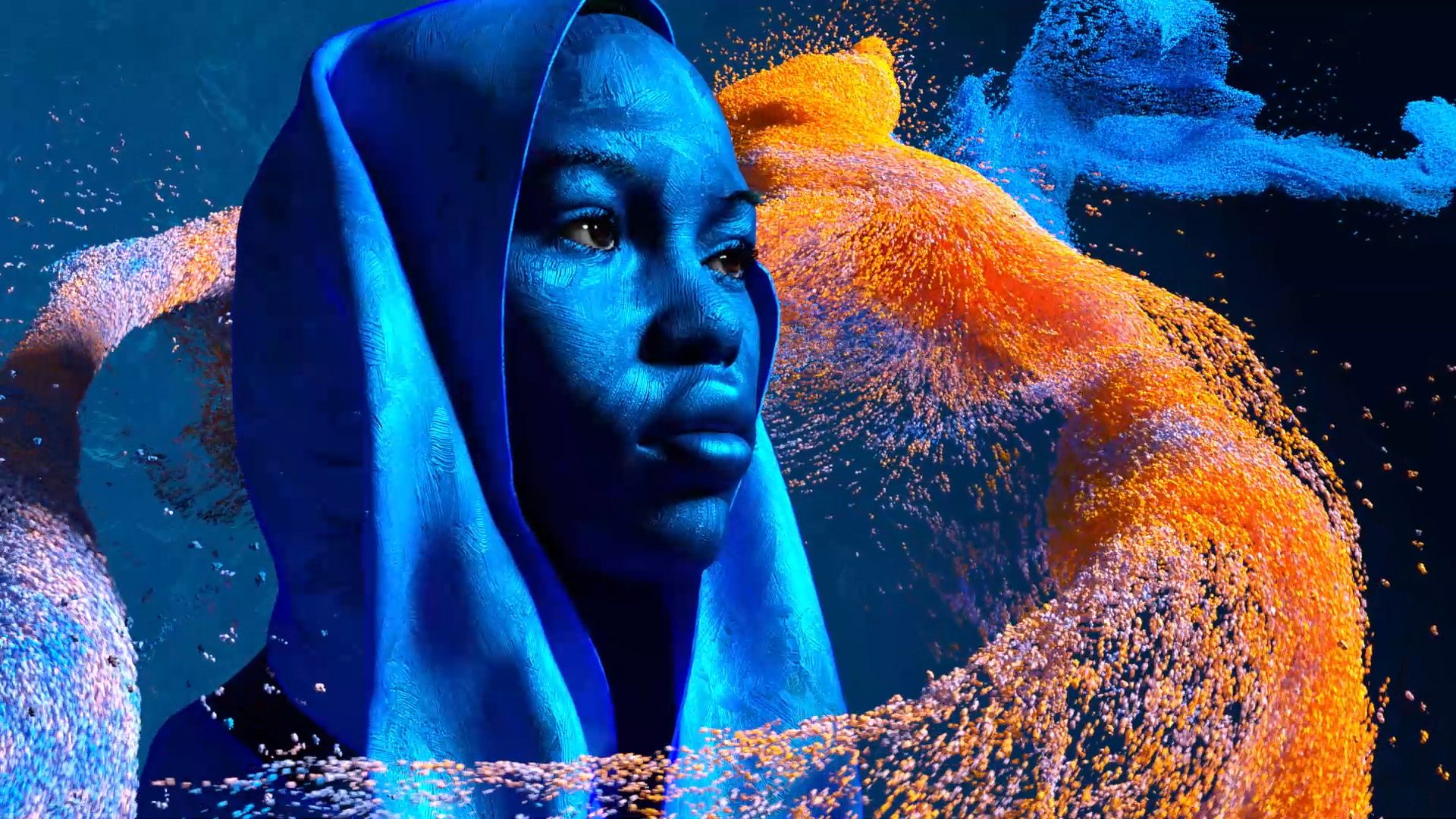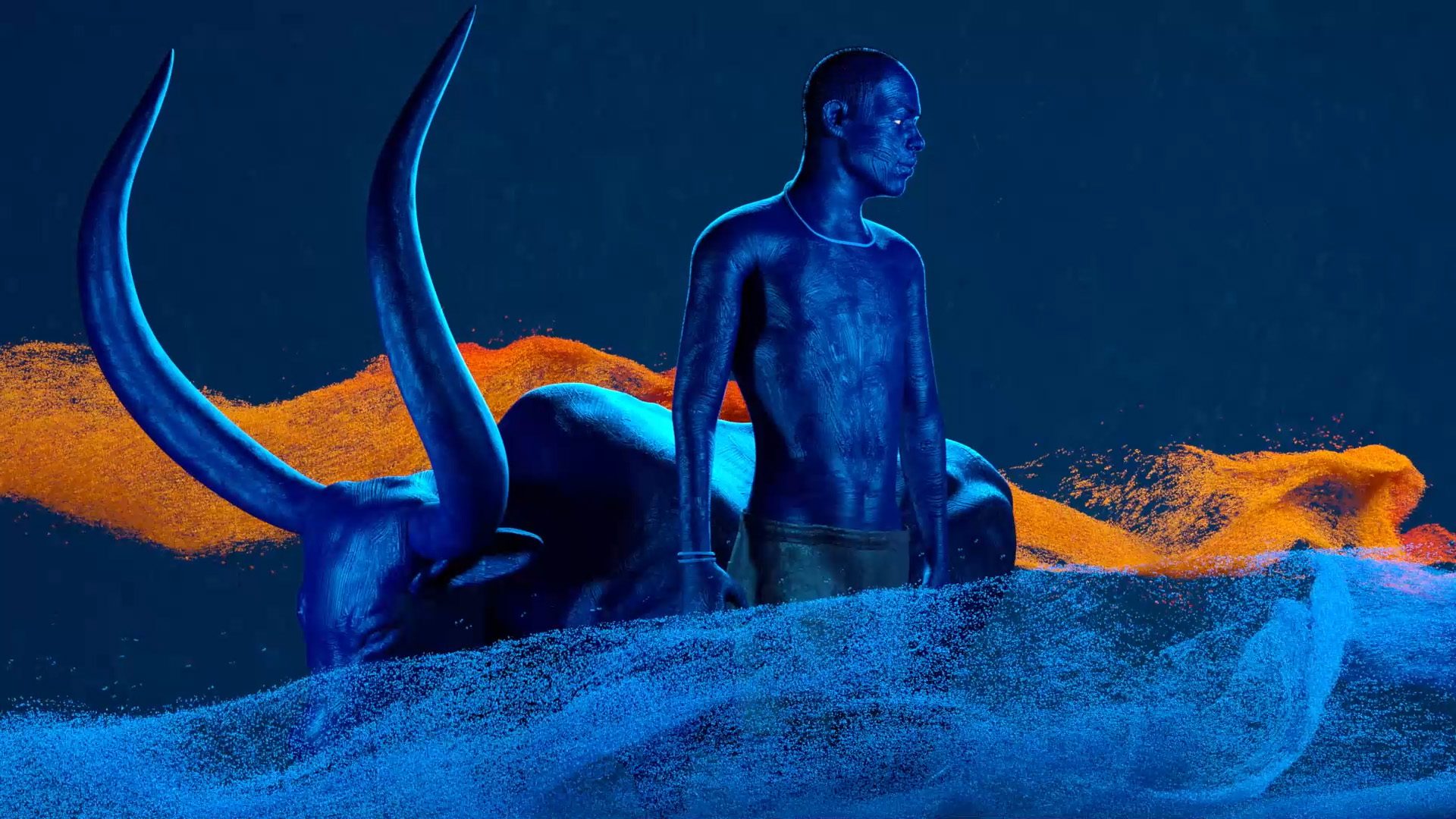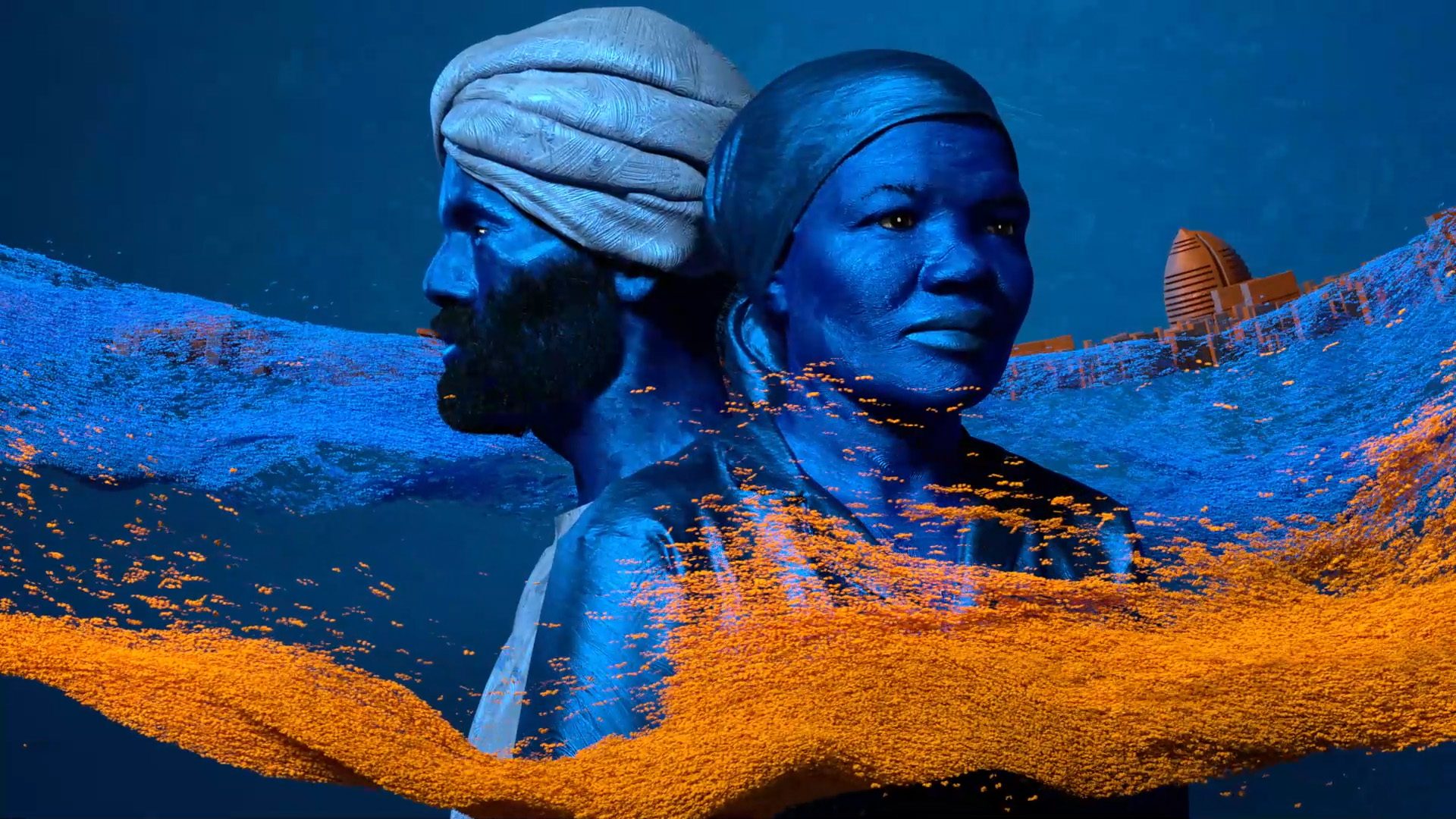 In unserem Opener werden die beiden Nile durch zwei Ströme von Partikeln dargestellt – in Blau und Orange/Gelb. Diese Partikel symbolisieren die Komplexität und Tiefe des Landes und seiner Menschen, aber auch die kontrastierenden Meinungen und Perspektiven, die in der sudanesischen Gesellschaft existieren.
