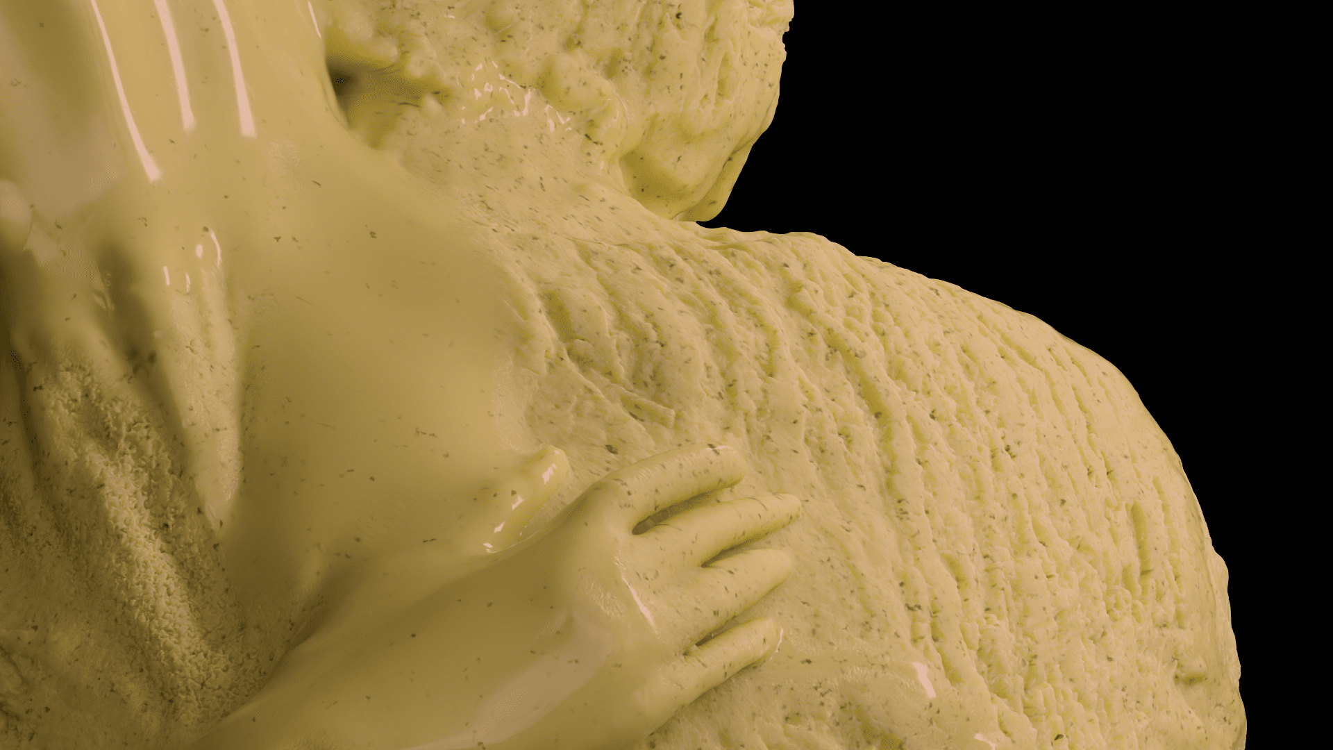 Wir haben eine hybride Pipeline aus analogem Handwerk und digitaler Simulation gewählt. Die Original-Skulptur wurde zunächst von Hand aus Ton modelliert, um eine natürliche Formbasis zu erhalten. Dieser Rohling wurde via Photogrammetrie (RealityCapture) digitalisiert und in ZBrush finalisiert. Die Schmelz-Animation erfolgte in Houdini durch iterative Fluid-Simulationen. Eigens entwickelte Shader sorgten beim Rendering für die realistische Textur der Eiscreme. Das Ergebnis sind zwei Spots, die die Präzision digitaler Tools mit der Ästhetik handgemachter Modelle verbinden.